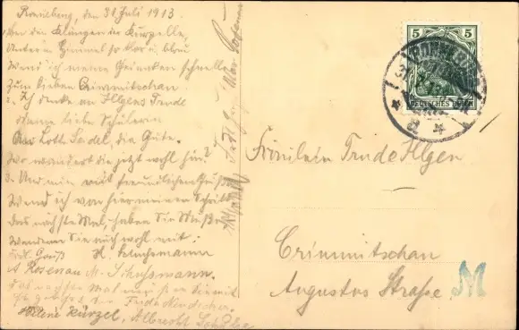 Zustand, siehe Scan, gelaufen, 1913 - ca 14 cm X 9 cm