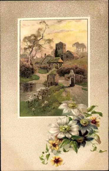 Ak Dorfpartie, Dorfanwohnerin, Häuser, Blumen