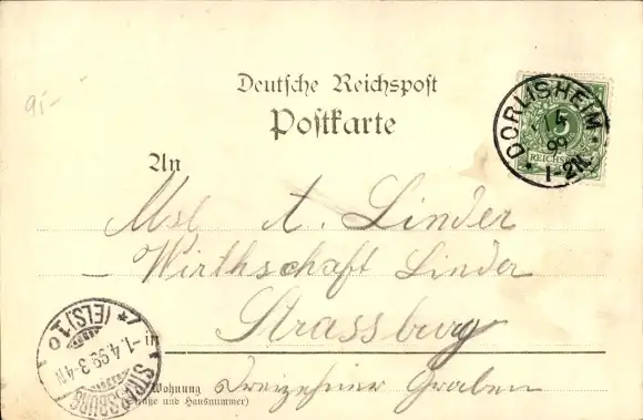 Zustand, siehe Scan, gelaufen, 1899 - ca 14 cm X 9 cm