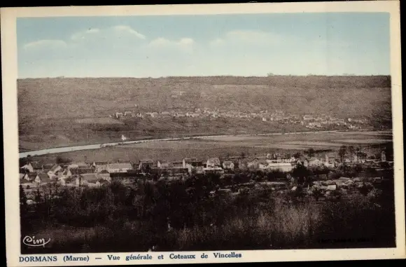 Ak Dormans Marne, Vue generale et Coteaux de Vincelles