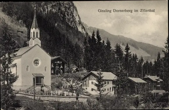 Ak Dornerberg Dornauberg Ginzling in Tirol, Blick auf den Ort im Zillertal, Kirche