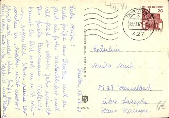 Zustand, siehe Scan, gelaufen, 1967 - ca 15 cm X 10 cm