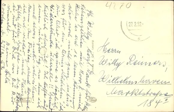 Zustand, siehe Scan, gelaufen, 1952 - ca 14 cm X 9 cm