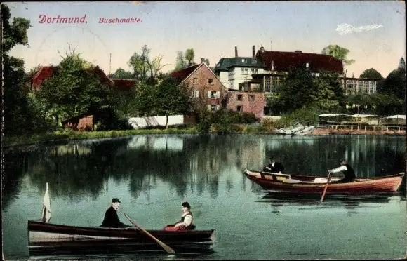 Ak Dortmund im Ruhrgebiet, Buschmühle, Teich, Boote