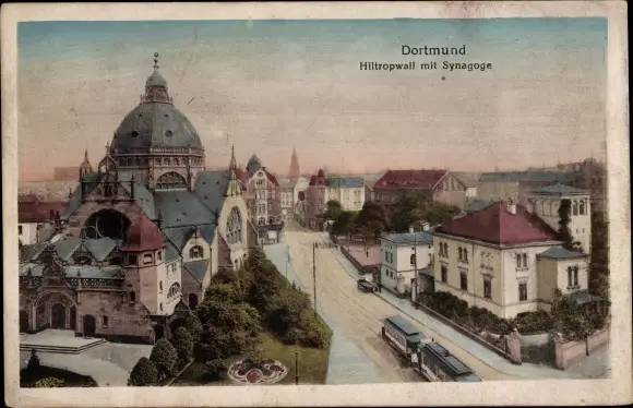 Ak Dortmund im Ruhrgebiet, Hiltropwall mit Synagoge, Straßenbahn