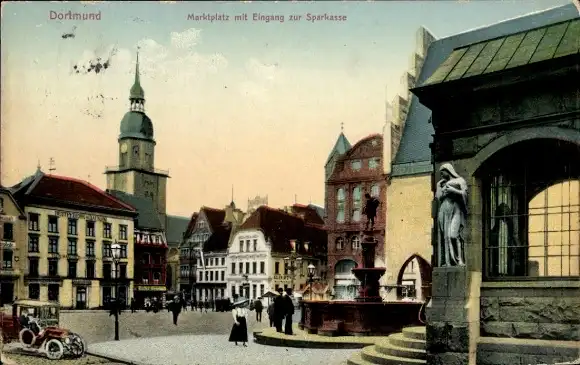 Ak Dortmund im Ruhrgebiet, Marktplatz mit Eingang zur Sparkasse