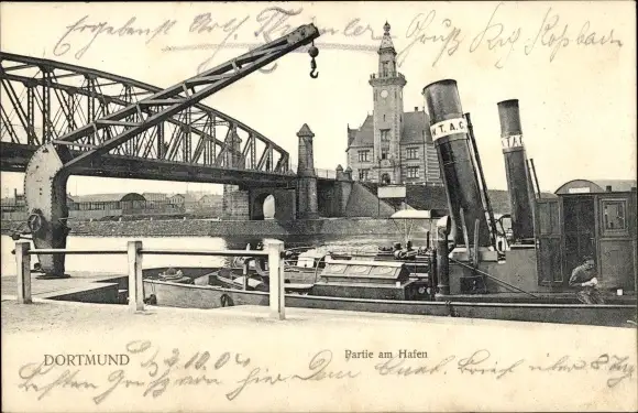 Ak Dortmund im Ruhrgebiet, Partie am Hafen, Frachtboot