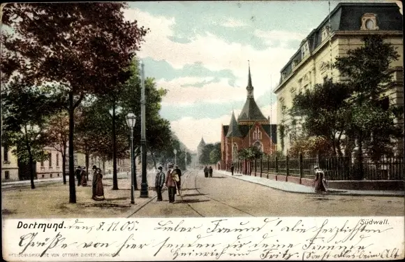 Ak Dortmund im Ruhrgebiet, Partie am Südwall, Kirche