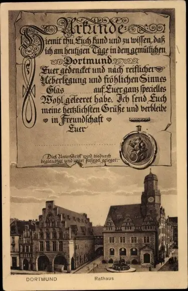 Ak Dortmund im Ruhrgebiet, Rathaus, Urkunde
