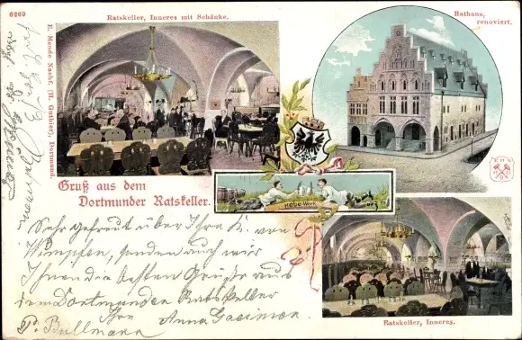 Ak Dortmund im Ruhrgebiet, Ratskeller, Inneres mit Schänke, Rathaus