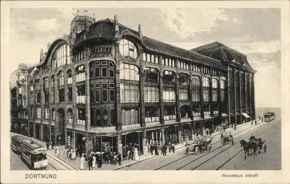 Ak Dortmund im Ruhrgebiet, Warenhaus Althoff, Straßenbahn