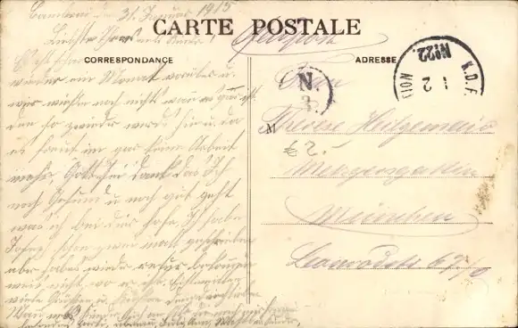 Zustand, siehe Scan, gelaufen, 1915 - ca 14 cm X 9 cm