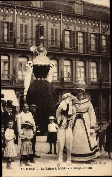 Ak Douai Nord, Gayant, Le Baiser à Binhin, Kissing Binbin, Straßenfest, Karneval