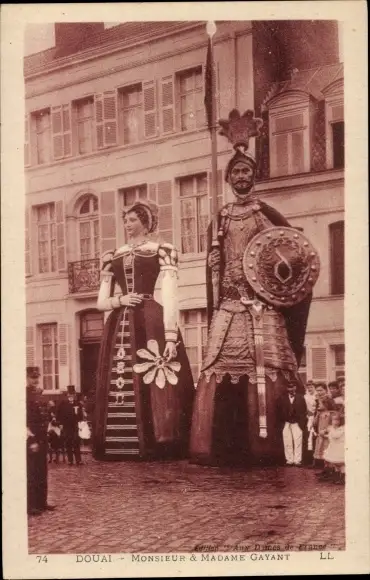 Ak Douai Nord, Herr und Frau Gayant, Straßenfest, Karneval