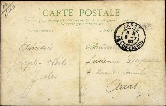 gelaufen 1907, leicht fleckig, sonst guter Zustand