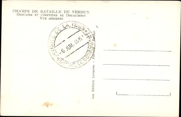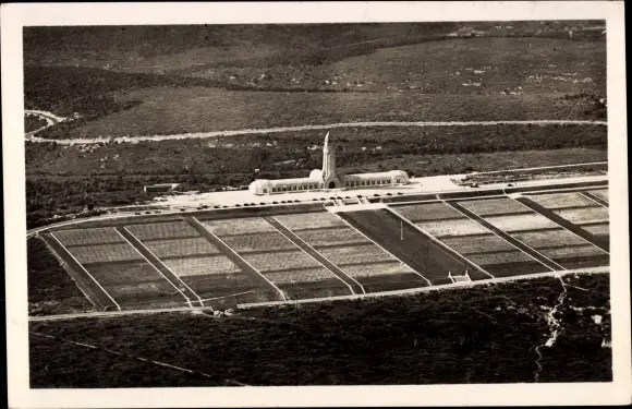 Ak Douaumont Lothringen Meuse, Champs de Bataille de Verdun, Ossuaire et Cimetière, Vue Arienne