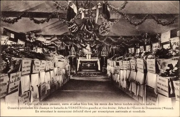 Ak Douaumont Lothringen Meuse, Provisorisches Gebeinhaus, Schlachtfeld von Verdun