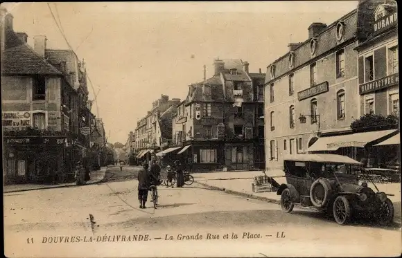 Ak Douvres la Délivrande Calvados, La Grande Rue et la Place
