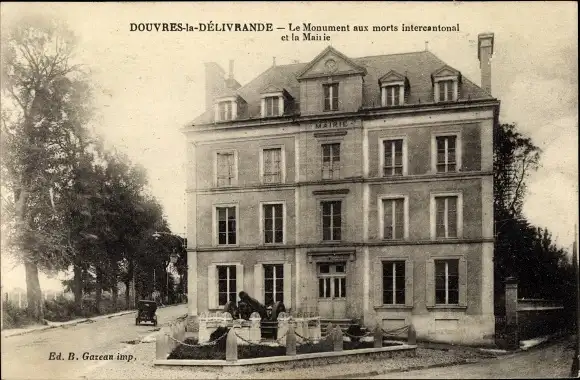 Ak Douvres-la-Délivrande Calvados, Mairie et Monument aux Morts