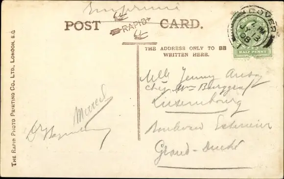 Zustand, siehe Scan, gelaufen, 1908 - ca 14 cm X 9 cm