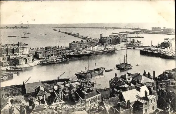 Ansichtskarte, Postkarte, Hafen, Schiffe, Boote, Dampfer, Boot