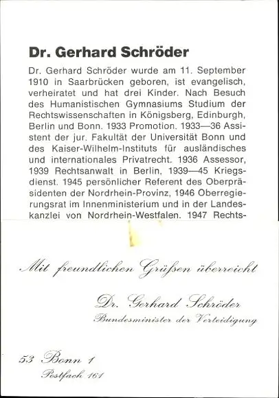 Ak Dr. Gerhard Schröder, Aussenminister, Autogramm