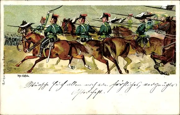 Ak Dragoner zu Pferden, Schlacht, Kaiserzeit
