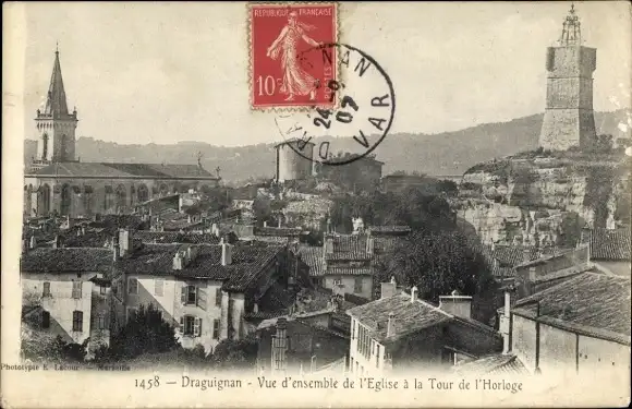 Ak Draguignan Var, Teilansicht, Kirche, Uhrenturm