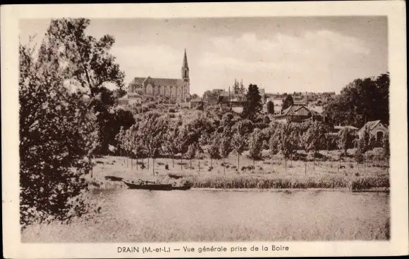 Ak Drain Maine et Loire, Vue générale prise de la Boire, Flusspartie