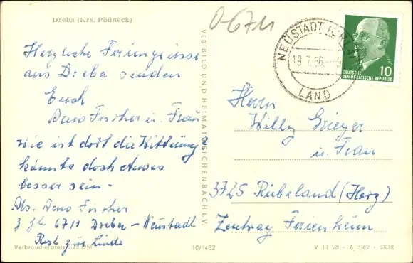 Zustand, siehe Scan, gelaufen, 1966 - ca 14 cm X 9 cm