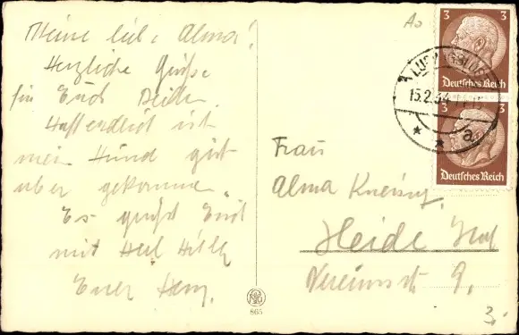 Zustand, siehe Scan, gelaufen, 1934 - ca 14 cm X 9 cm