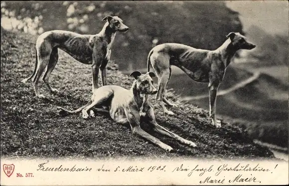 Ak Drei Hunde auf einer Wiese