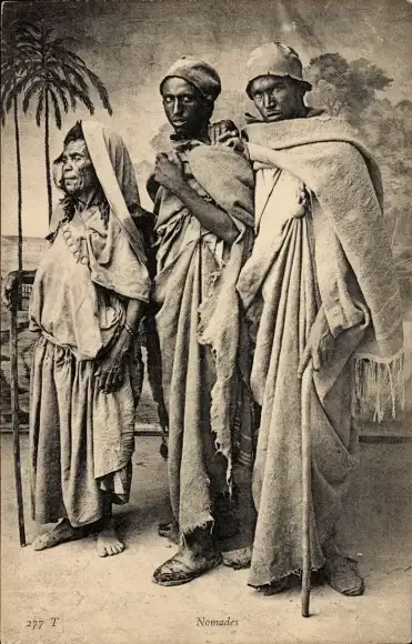 Ak Drei Nomaden vor gemaltem Hintergrund, Maghreb