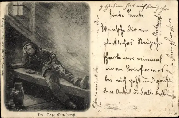 Ak Drei Tage Mittelarrest, deutscher Soldat im Gefängnis