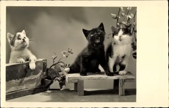 Ak Drei junge Katzen, Hauskatzen, Kätzchen
