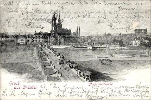 Ak Dresden Altstadt, Augustusbrücke, Fluss mit Promenade, Architektur
