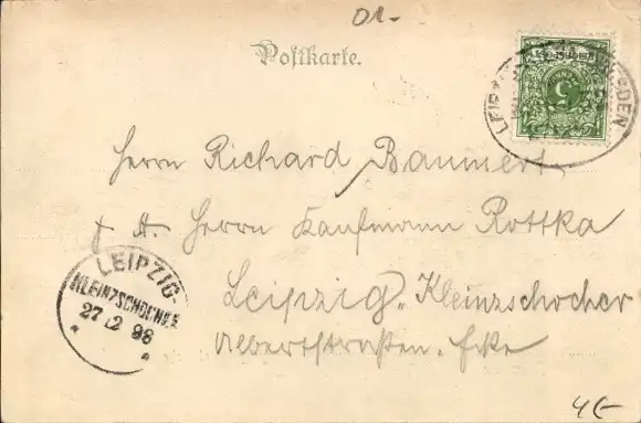 Zustand siehe Scan, gelaufen, 1898 - ca 14 cm X 9 cm