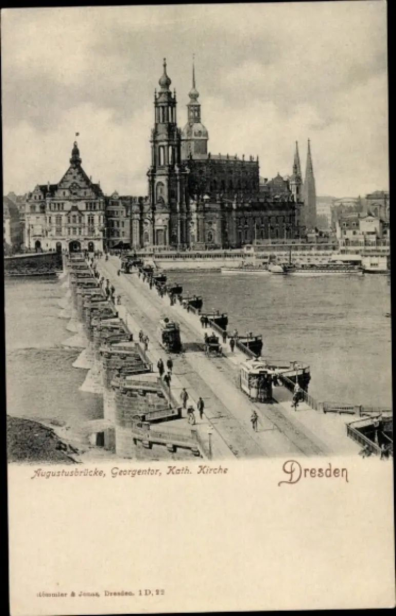 Ak Dresden Altstadt, Augustusbrücke, Georgentor, Kath. Kirche, Dresden