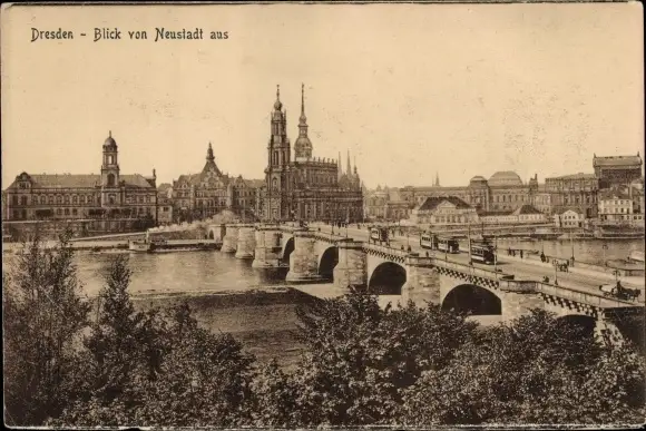 Ak Dresden Altstadt, Blick von Neustadt aus, Brücke