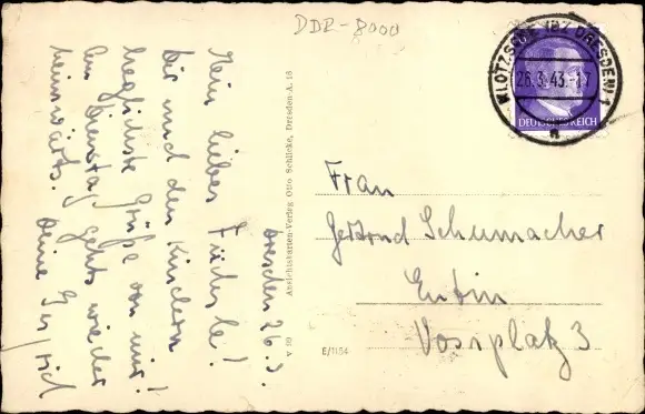 Zustand, siehe Scan, gelaufen, 1943 - ca 14 cm X 9 cm