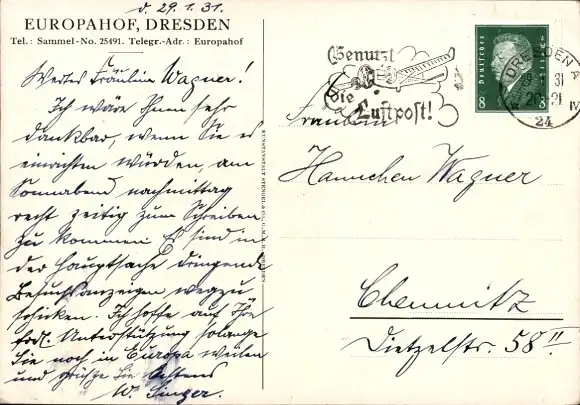 Zustand, siehe Scan, gelaufen, 1931 - ca 15 cm X 10 cm