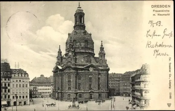Ak Dresden Altstadt, Frauenkirche mit Neumarkt, Außenansicht, Kutsche