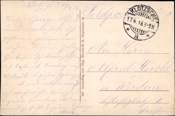 Zustand, siehe Scan, gelaufen, 1916 - ca 14 cm X 9 cm