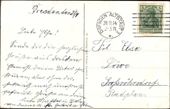 Zustand, siehe Scan, gelaufen, 1914 - ca 14 cm X 9 cm
