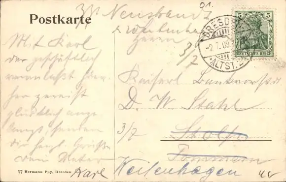 Zustand siehe Scan, gelaufen, 1909 - ca 14 cm X 9 cm
