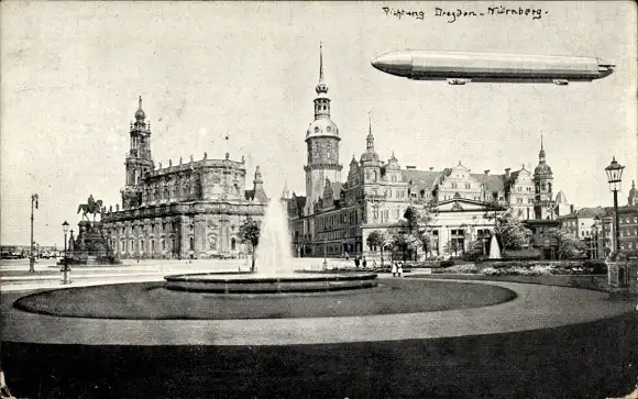 Ak Dresden Altstadt, Zeppelin über Stadt