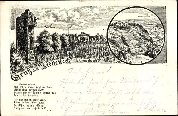 Ak Dresden Cossebaude, Liebeneck, Panorama, Gedicht