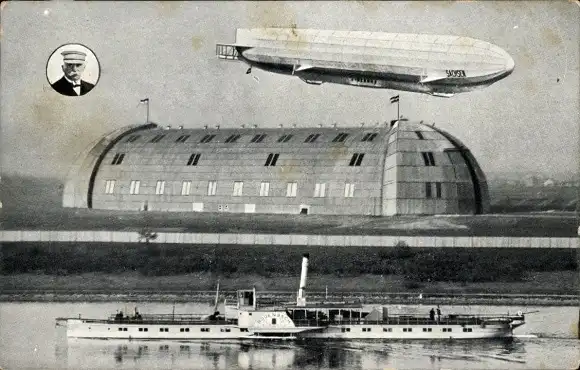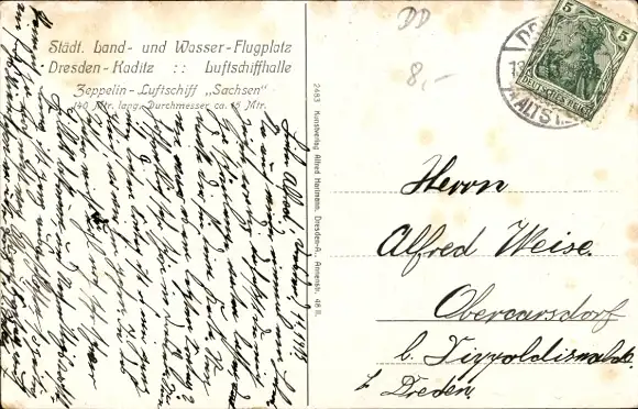Ak Dresden Kaditz, Städtischer Land- und Wasser-Flugplatz, Zeppelin-Luftschiff Sachsen