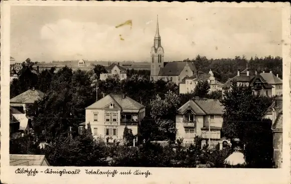 Ak Dresden Klotzsche Königswald, Totalansicht mit Kirche