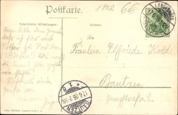 Zustand, siehe Scan, gelaufen, 1905 - ca 14 cm X 9 cm